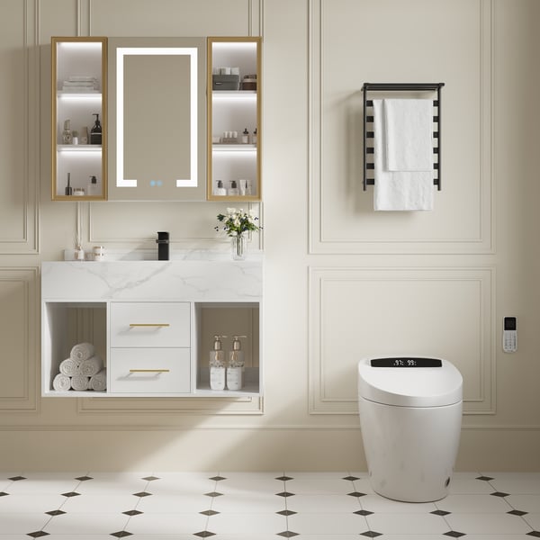 900mm Floating Bathroom Vanity & Automatic Toilet One-Piece Smart Toilet Wall Outlet