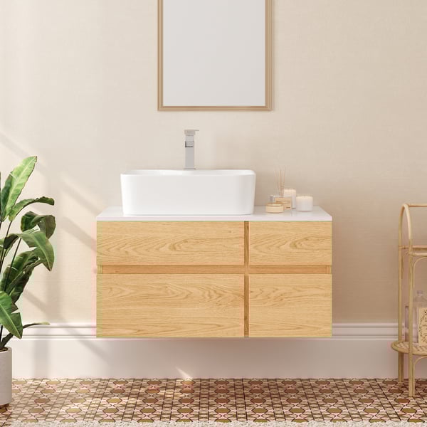800mm Natural & White Floating Bathroom Vanity Faux Marble Top Ceramic Countertop Basin