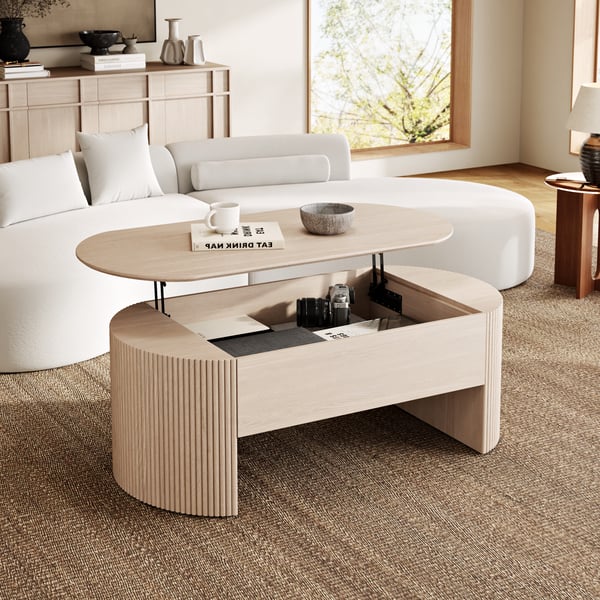 Modern 1200 mm Natural Oval Fluted Coffee Table with Lift-top