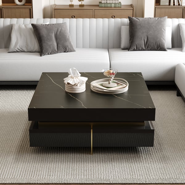 Modern Square Black Sintered Stone Coffee Table with 4 Drawers