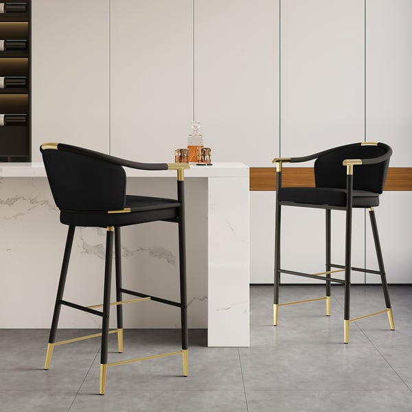Craines Bar Height Bar Stool with Arms in Black Upholstery Velvet 2-Pieces