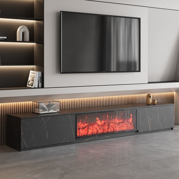 1800mm Black Sintered Stone Electric Fireplace TV Stand with Remote Control