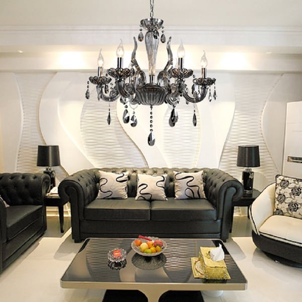 Glam Smoke Grey 6-Light Crystal Glass Chandelier for Living Room and Dining Room