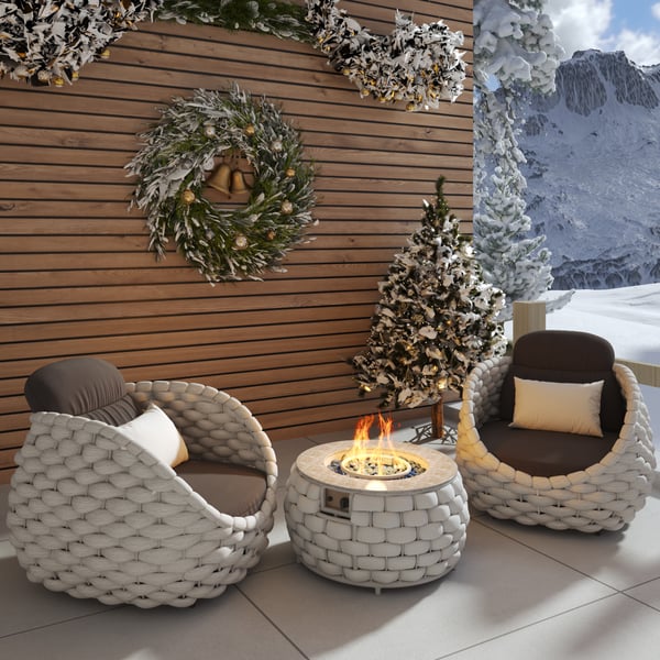 Tatta Weave Round Propane Outdoor Fire Pit & 2 Outdoor Chair Set Woven Textilene Rope